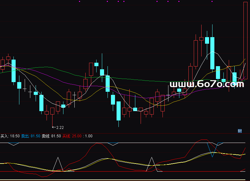 涨势确立: VAR1*(VAR2C>0 AND VAR2D*16+81.5)*VAR1,COLOR80FFFF ;