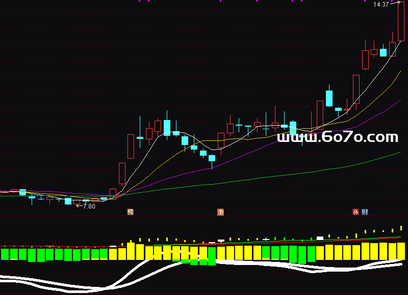 视觉导航系统:通过红黄绿三种颜色的K线,指标直观标注了不同的资金状态。黄色K线表示机构资金净流入,绿色K线则代表资金外流,而白色K线则提示趋势可能即将反转。