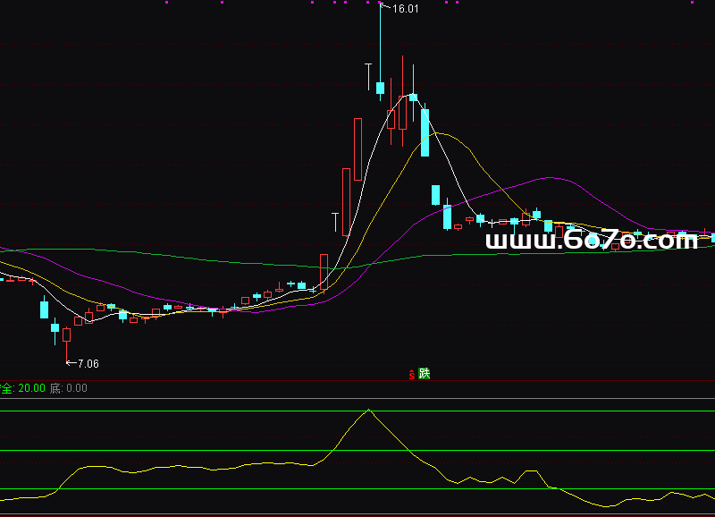 最后的主力控盘线就是通过(主力筹码/总筹码)*100来计算出来的百分比曲线。这条黄线的高低直接反映了主力对盘面的控制程度: