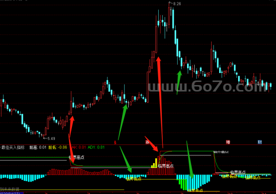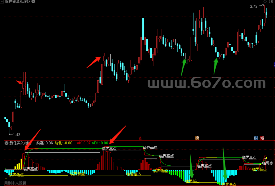 老股民都知道,MACD就像市场的“心跳监测仪”,而今天这个指标堪称升级版“心脏起搏器”。DIF线是12日与26日均线的差值,相当于市场短期动能的晴雨表;DEA线作为DIF的9日均线,就像给心跳装了个过滤器;最后MACD柱状图就是市场“脉搏”的振幅。最神奇的是那个黄色箭头W6信号,当MACD柱跌破前低时自动标记“临界低点”,就像医生发现心跳骤降时的急救按钮——这正是主力资金暗度陈仓的关键时刻!