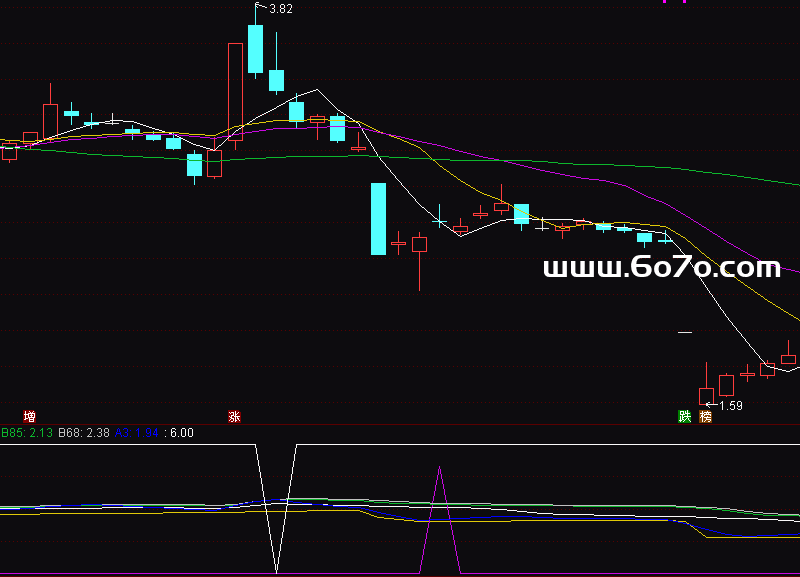 选股条件:CROSS(B85,B68) AND 底>0 AND A3>REF(A3,1);