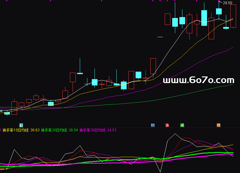 换手率30日均线:MA(换手率,30),COLORFF00FF,LINETHICK3;