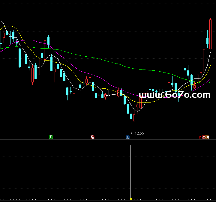 我一看条件:→ 长期线:12.3(前一天是14.1,连续两天低于15)→ 中期线:16.8(也在低位)→ 短期线:从前一天的4.7跳到6.9,明显上翘→ 关键是:前一天短期线只有4.7,符合“破5”条件→ 当天直接金叉长期线,形成标准买点