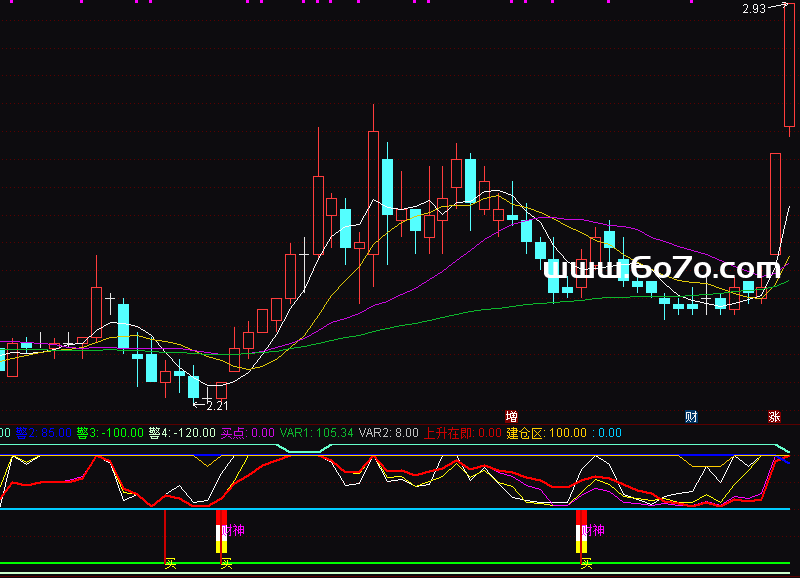 最后那个闪烁的“财神”字样,就是实战买点信号!