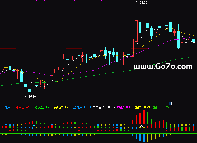 均量20:MA(成交量,20)/50000,COLOR00FFFF,LINETHICK2;