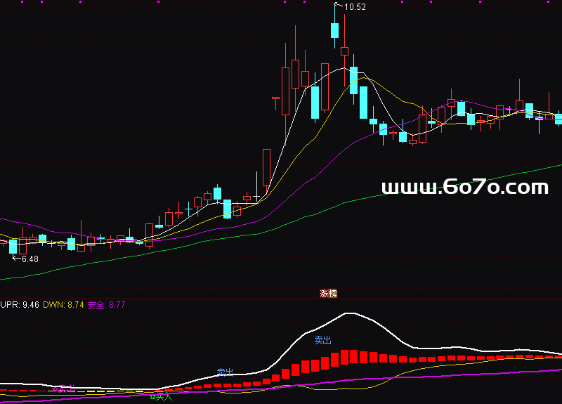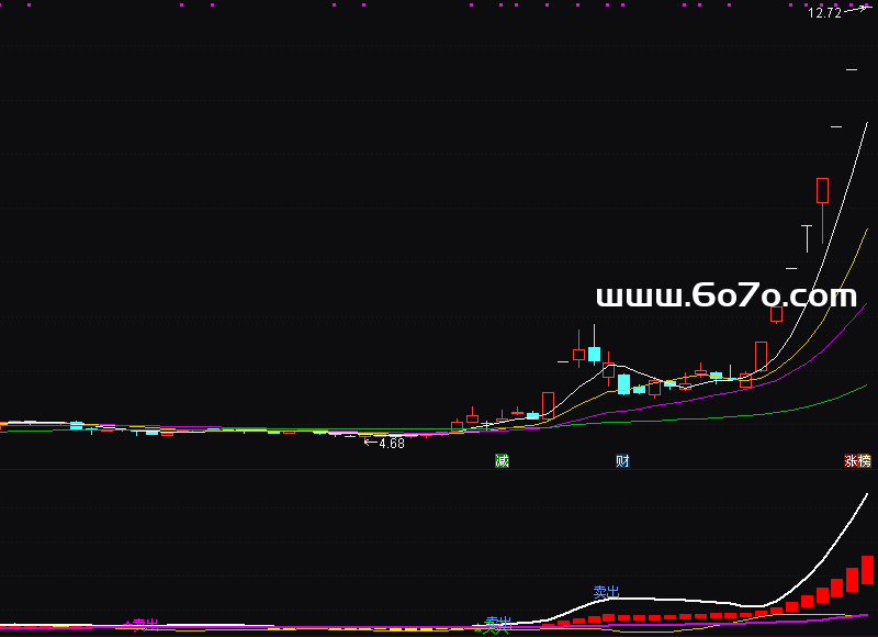 01 别再被代码吓跑!揭秘“红黄带”背后的操盘逻辑兄弟们,看到一堆代码是不是头都大了?别慌,今天咱们就把这“天书”翻译成大白话。这个指标的核心,说白了,就是给价格装上了一个“趋势导航仪”📈和“情绪探测器”🔍。你看这串代码:上线:=SMA(C,6.5,1); 和 下线:=SMA(C,13.5,1);。这就是整个指标的“灵魂”,我管它叫“红黄带”。你可以把它想象成一场龟兔赛跑,6.5日线是兔子🐰,13.5日线是乌龟🐢。当兔子(快线)冲到乌龟(慢线)前面时,屏幕上就出现一条红色带子,告诉你:“嘿,动能起来了,该考虑上车了!”反过来,乌龟超过了兔子,出现黄色带子,就是在提醒你:“哥们儿,跑不动了,歇歇吧,该准备下车了。”