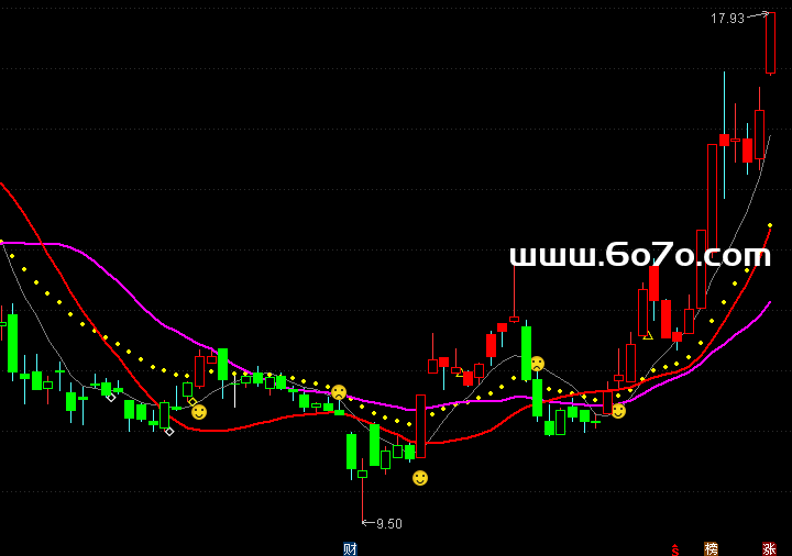 就在我快绝望的时候,一天晚上,我照例打开通达信,切换到“必胜笑脸”指标。突然,我发现,在股价连续阴跌、缩量横盘了好几天后,一根小阳线的下方,赫然出现了一个**洋红色的“笑脸”**图标!😊