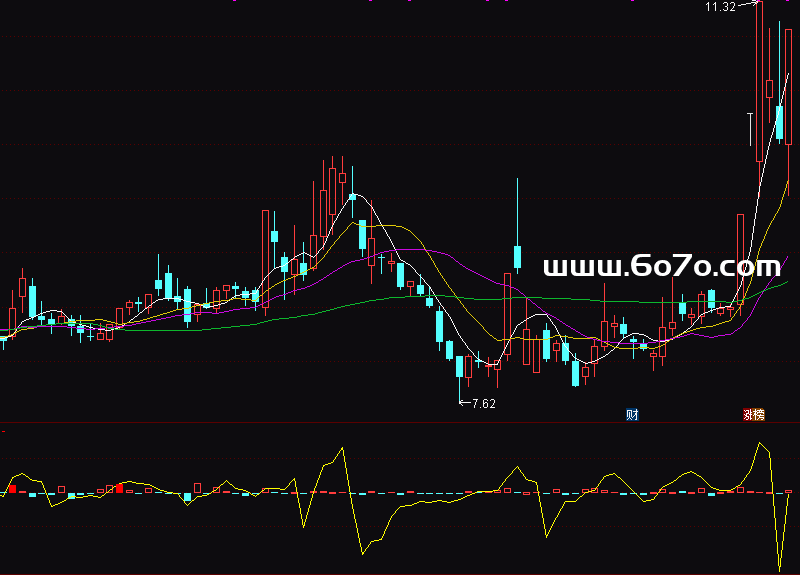 (指标使用口诀:红柱过8要睁大眼,黄线抬头莫手软,量能配合是关键)