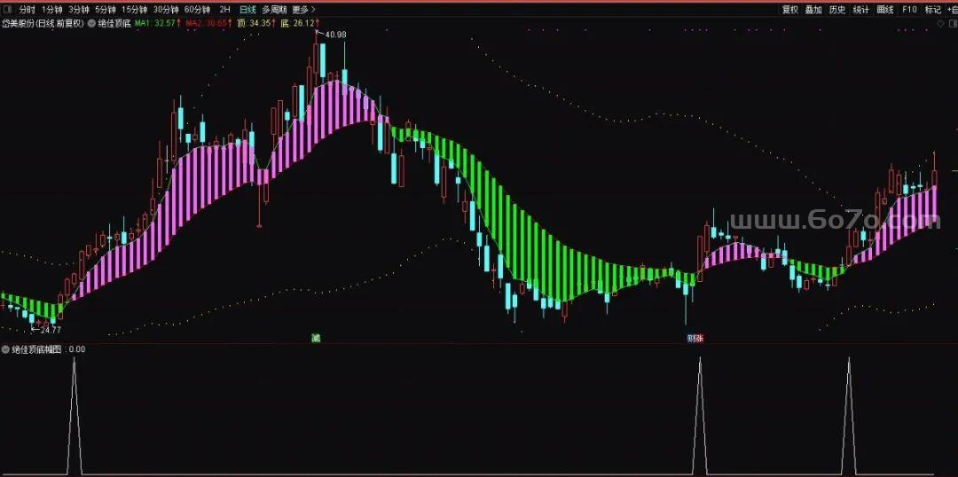01 指标原理:为什么这个公式能掐准买卖点?想象一下,股票走势像过山车,而我们要找的就是从下坠到拉升的最低点。这个指标的精髓在于两条 动态生命线:MA1(6日EMA) 像灵敏的雷达,随时捕捉股价脉冲MA2(25日EMA) 像沉稳的锚,锁定中期趋势方向