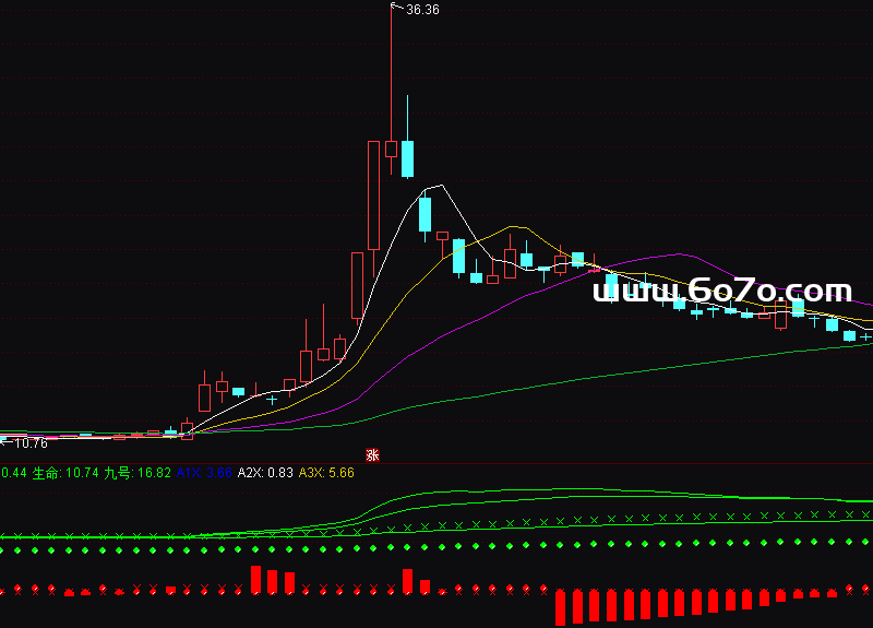 生命:EMA(CLOSE,453),CIRCLEDOT,COLORGREEN;
