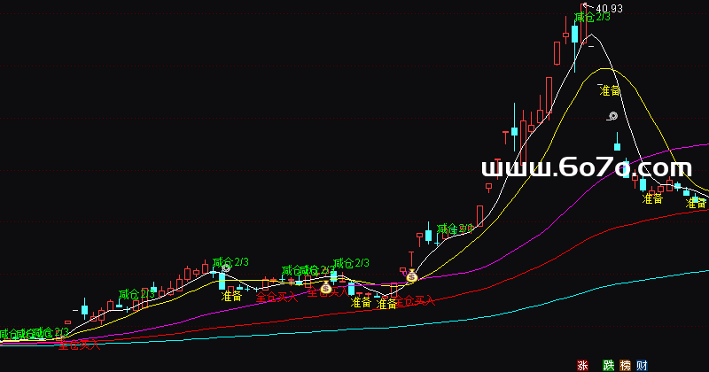 均线系统:市场温度计MA5(白线)、MA10(黄线)等5条均线,直接反映短期到中期成本趋势。当短期均线快速上穿长期线(如白线穿越紫线),说明资金开始抢筹