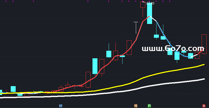 操作线:=分水岭-(EMA(C,3)-分水岭),COLOR00FFFF,LINETHICK2;
