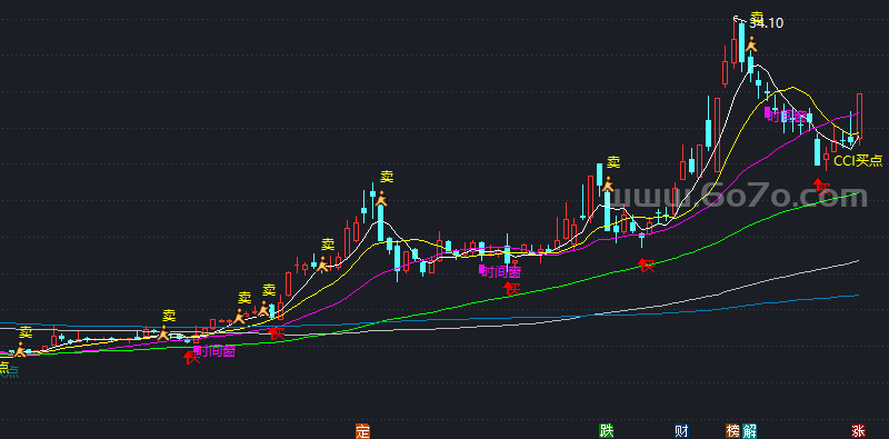 DRAWTEXT(LAST(MA(C,5)<MA(C,10),5,0) AND "CCI.CCI">REF("CCI.CCI",1) AND CROSS("CCI.CCI",-100),L*0.98,'CCI买点'),COLORYELLOW;