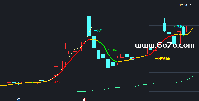 DRAWTEXT(减仓,HIGH*1.02,'←风险'),COLORCYAN;