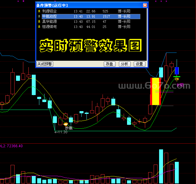 捕捉“起爆点”——博金长阳🔴条件:近期高压区下方开盘+操作线日涨≥2%+开低于预警线。含义:主力低开洗盘结束,即将大阳突破,K线下方跳“长阳”文字,红黄K线就是冲锋号📯。