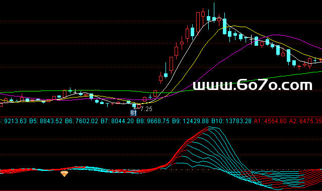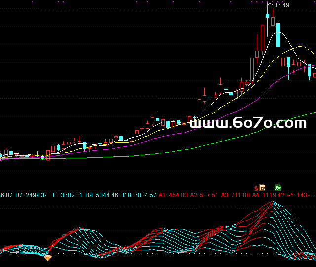 牵牛绳是如何工作的?核心在于BBIBOLL通道的构建。BBIBOLL就像给股价画了一个"安全区域",上轨是天花板,下轨是地板。当股价触及上轨时,就像牛要冲破栏杆了。