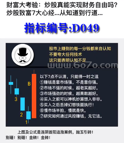1️⃣ 你是“纪律捕手”,不是“感觉赌徒”。这个战法信号明确,但出现频率不会太高。它需要你耐心等待信号出现,然后果断执行,不掺杂个人“我觉得已经跌够了”的臆测。符合条件就试,不符合就看。2️⃣ 你有“快枪手”的觉悟,能严格执行止损。这是“追涨”战法,本质是做多头的顺势。一旦信号失败(例如次日股价跌回关键位置下方),必须果断离场,保护本金。它追求的是“赔率”和“概率”,不是每战必胜。3️⃣ 你理解“工具”的边界,不把它当“圣杯”。它帮你解决了“何时出手”的问题,但没有解决“出多少”和“如何全身而退”的问题。务必结合仓位管理、大盘氛围和板块效应来使用,把它作为你交易系统中的一个优质“零件”,而不是全部。