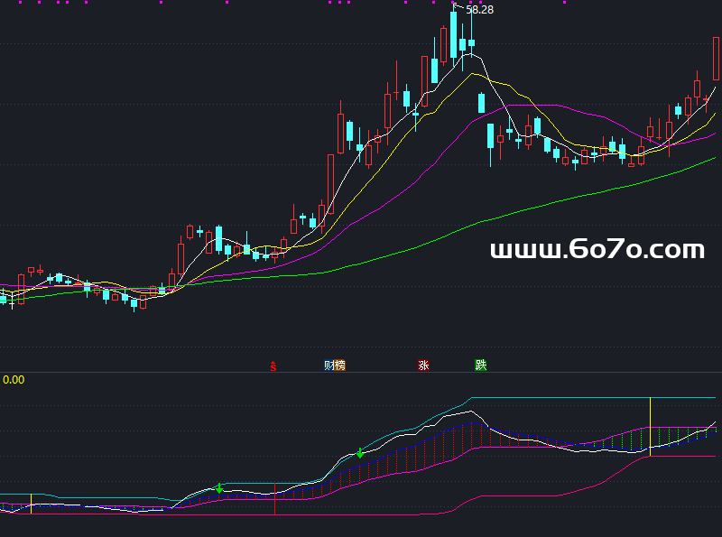 其中,“启动”信号,是短期均线上穿中期均线,且价格处于震荡箱体上沿,表示多头开始发力;而“暴涨”信号则更进一步,要求趋势线、平衡线和操作线三者形成多头排列,且操作线略微向上拐头,说明上涨动能强劲。