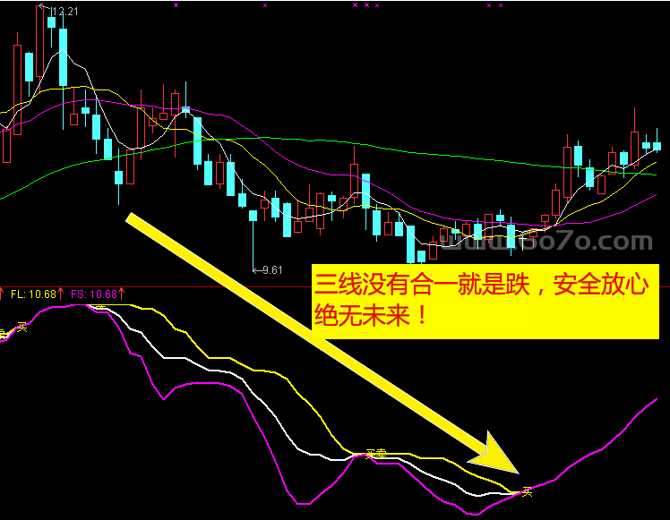 "老股民都懂:均线粘合处,不是暴涨就是暴跌!" 我们设计的副图指标用三根线捕捉这个关键节点: