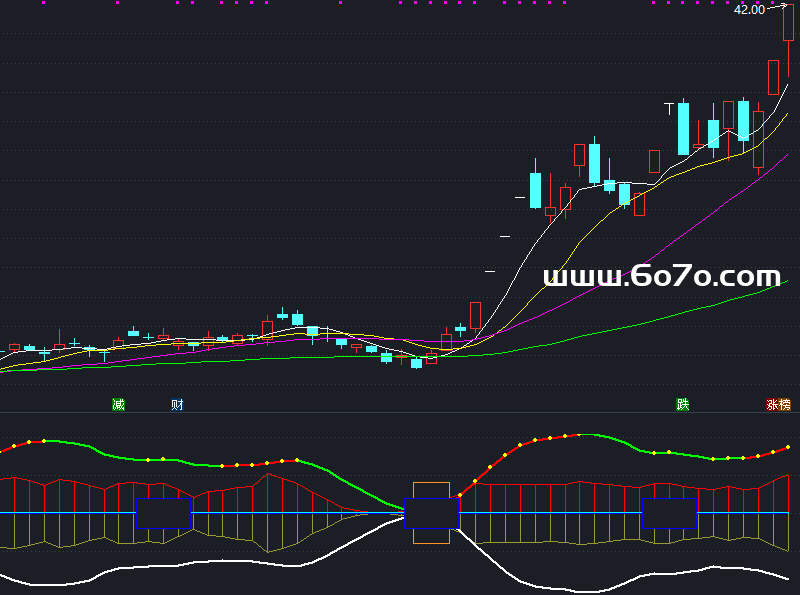 桥: (EMA(VAR66,1))*(终止日),COLOR0000FF,LINETHICK2;