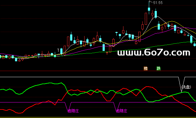 CROSS(庄筹线,散筹线) 表示庄家筹码反超散户(庄筹线升破散筹线);