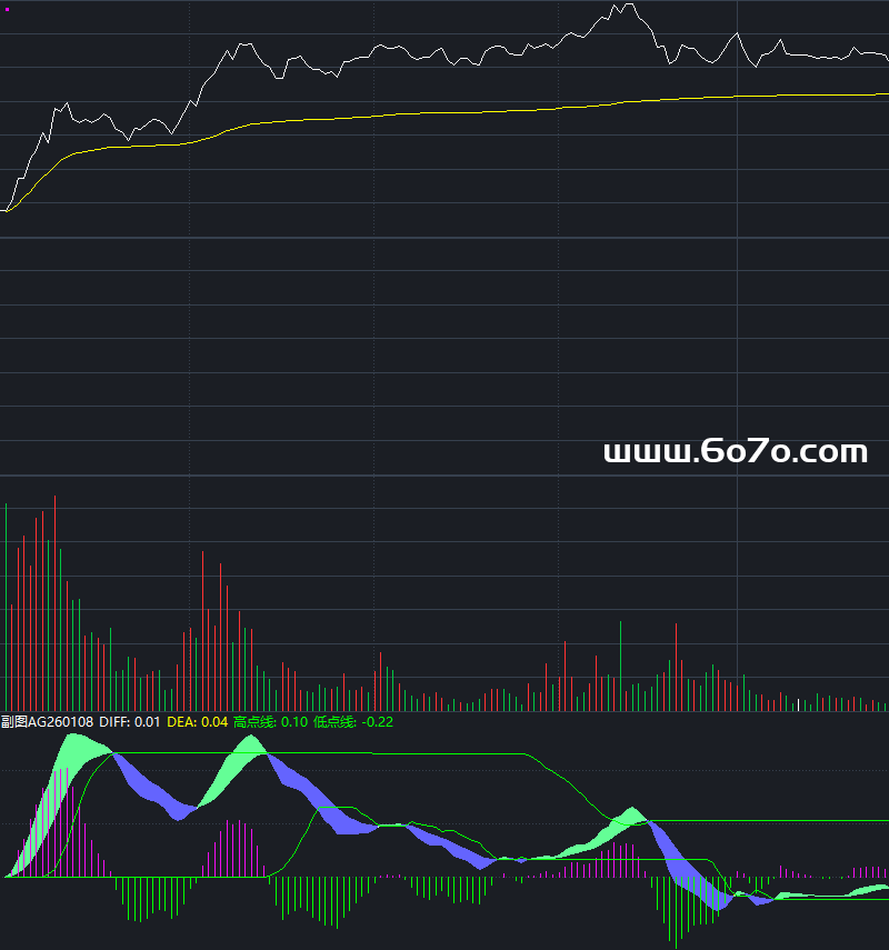 低点线:IF(DIFF<VARX2 AND DEA=VARX2,MIN(HHV(VARX2,10),VARX3),VARX2),COLORGREEN,LINETHICK1;