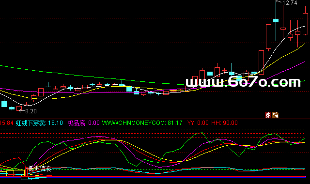 💡 01 指标原理:揭秘如何捕捉底部机会浪、波、段的秘密:指标核心逻辑通达信低进踏浪指标的核心是三条线:浪(紫色快速线)、波(红色中线)、段(黄色慢线)。