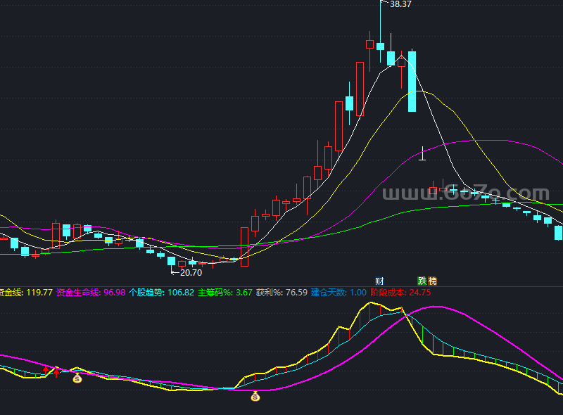 个股趋势: EXPMEMA(个股趋势A,5),COLORCYAN,LINETHICK1;
