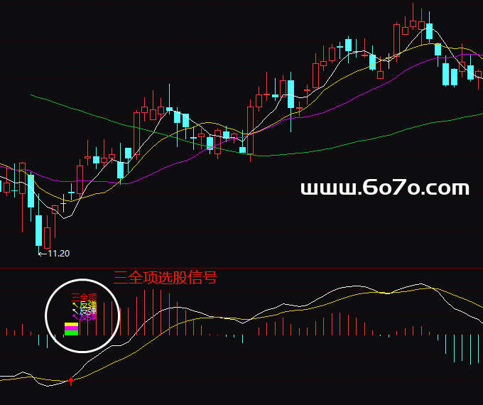 当这三个条件同时出现——低位金叉、二次金叉、底背离——我们称之为“三全项”。这时指标会在副图上标记出“三全项”,这通常意味着这只股票正处于“被压制的强势股”,随时可能出现强势反弹。
