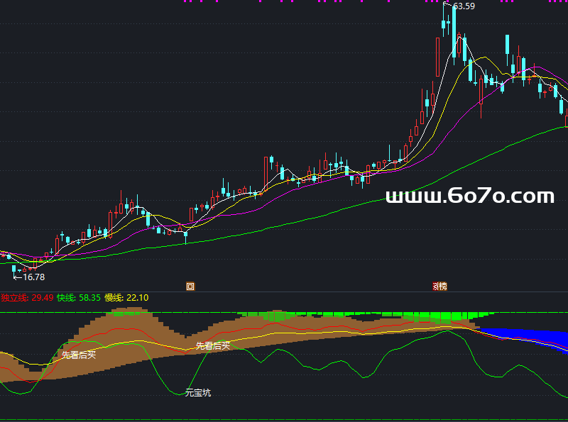 记住,指标里画出的“顶”区和“底”区(图上方的绿色柱和下方的蓝色柱),不是让你在“顶”区最高点卖,在“底”区最低点买。那是神仙干的事。它的作用是帮你识别“鱼身”所在的区域——避开明确的顶部风险区,在相对的底部区域里寻找更安全的介入机会。索罗斯说过:“重要的不是你的判断是错还是对,而是在你正确的时候要最大限度地发挥出你的力量来。”这个指标,就是在帮你提高“正确时”的决策质量。