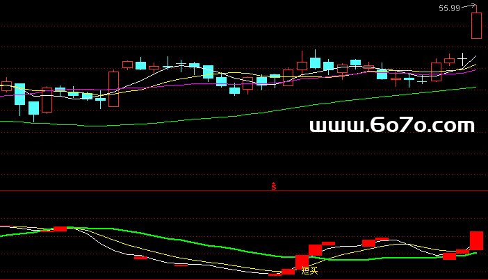 这里用到了SMA(平滑移动平均),A是快线,B是慢线。当快线A上穿慢线B时,也就是我们常说的“金叉”,这代表资金的短期攻击势头开始强于趋势。