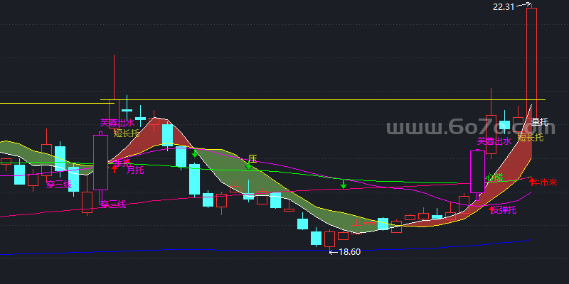 DRAWTEXT(月价托 ,MA20-0.2,'月托'),COLORMAGENTA;