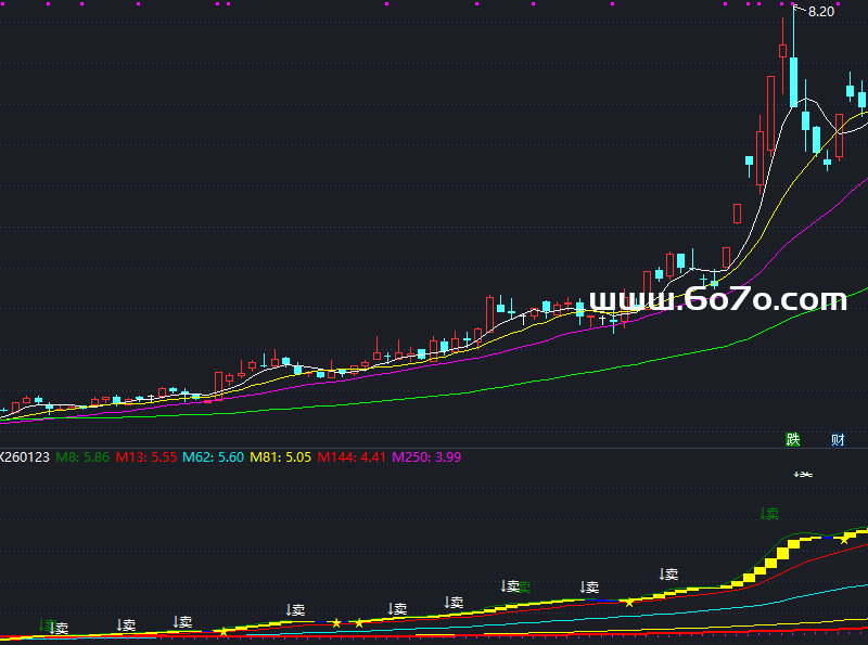 🌈 彩色均线带8日(🟢)、13日(🔵)、55日(🟡)三条均线构成趋势轨道——股价在55日线上方运行且短均线多头排列时,绿灯亮起