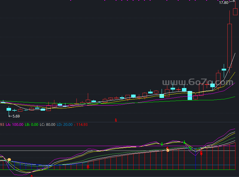 BK: EMA(T6,3)*1.22,COLORWHITE;