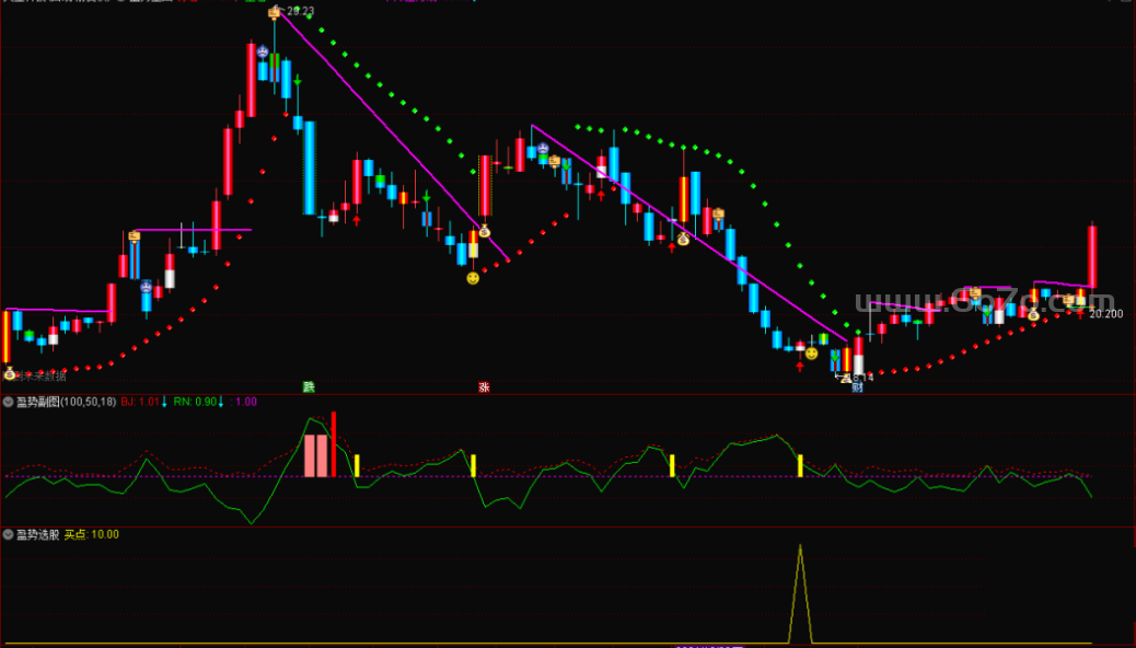 股市里没有神,只有把简单的事情重复做、把复杂的逻辑简单化的人。这个“盈势操盘”指标,就是帮你把复杂的K线变成红绿灯。路怎么走,方向盘还在你自己手里。