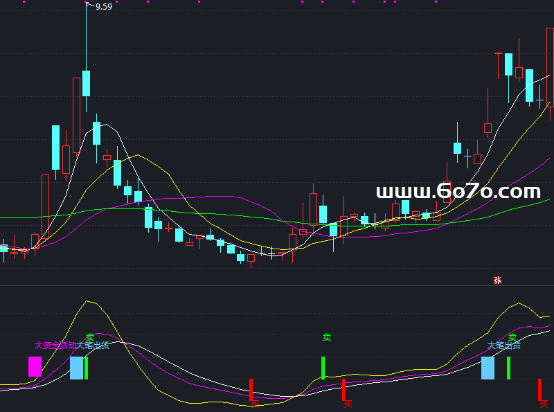 ③ 信号层(VAR8-VAR19)当指标出现 “接近底部” 字样时,相当于股票在喊“我快到底了快来看”📢。特别要关注 紫色柱状线 与 黄色“买”字 的组合信号,这就像交通灯从黄转绿的瞬间,是最佳入场时机。