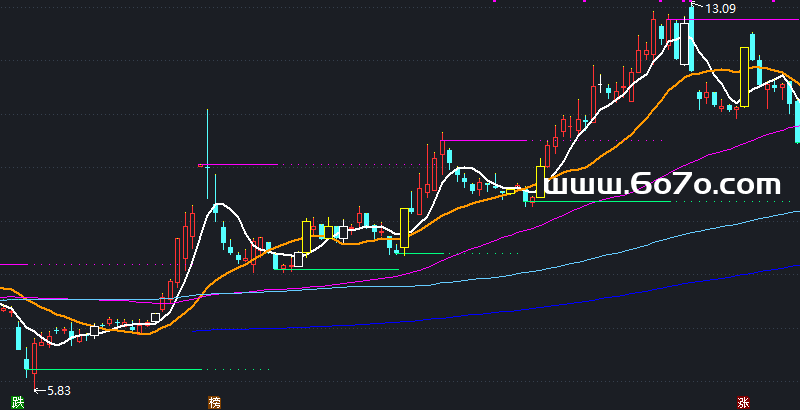 这个指标在趋势性较强的股票身上表现最佳。无论是缓慢上升的“慢牛”,还是格局清晰的波段行情,当均线逐渐排好队,它发出的“白K买、黄K加”信号往往非常精准。反之,在长期横盘、像织布机一样来回震荡,或者毫无章法、暴涨暴跌的“妖股”身上,它可能会频繁发出错误信号,让你左右挨巴掌。