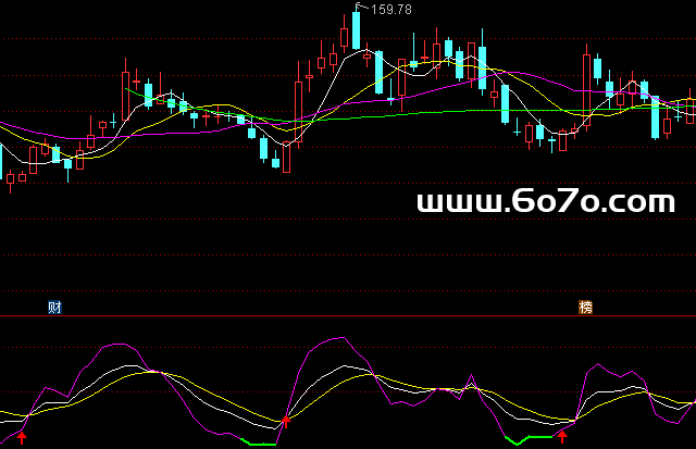 这句话的意思是:当J线从下方向上穿过数值1的时候,就在对应的J线位置画一个图标(通常是小箭头)。这就是我们今天要抓的“起跑信号”。