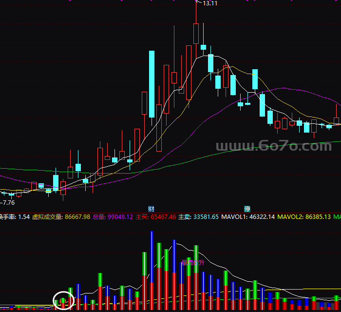为什么金叉有效?当短期量能(白线)突然放量上穿中期(黄线)或长期量能(绿线),说明冷门股开始被资金盯上。就像平静水面突然泛起涟漪——有鱼来了!去年深中华A启动前就出现过白线连续上穿黄绿线的信号。