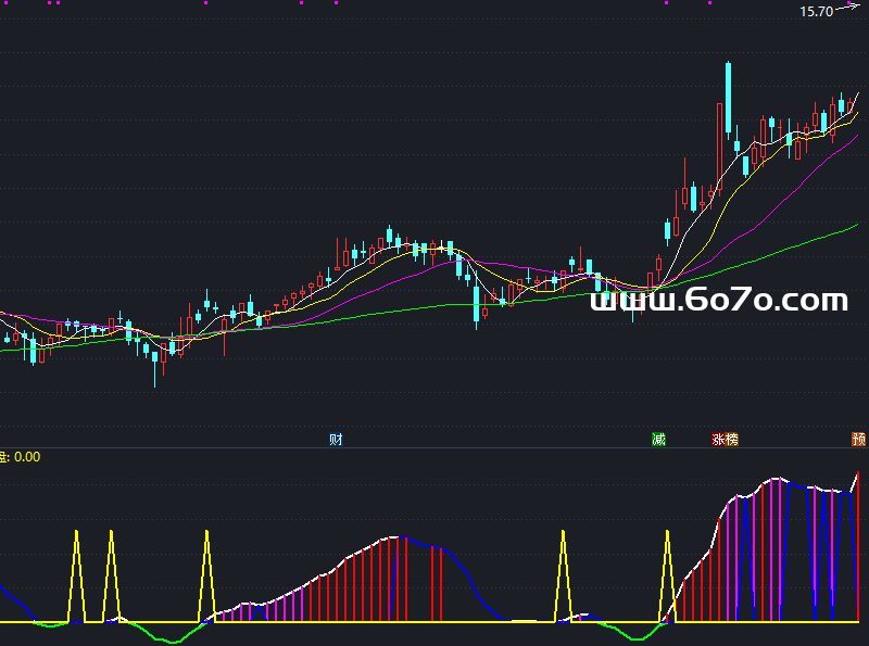 有庄控盘:IF(控盘力度>REF(控盘力度,1) AND 控盘力度>0,控盘力度,0),LINETHICK2,STICK,COLORFF00FF;