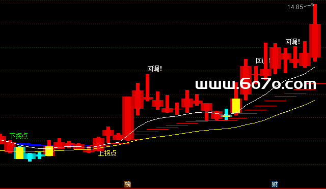 这个指标就像给K线图装了红绿灯——当黄线(FF)上穿蓝线(MA15)时,会跳出"上拐点"提示。原理其实很简单 ✨