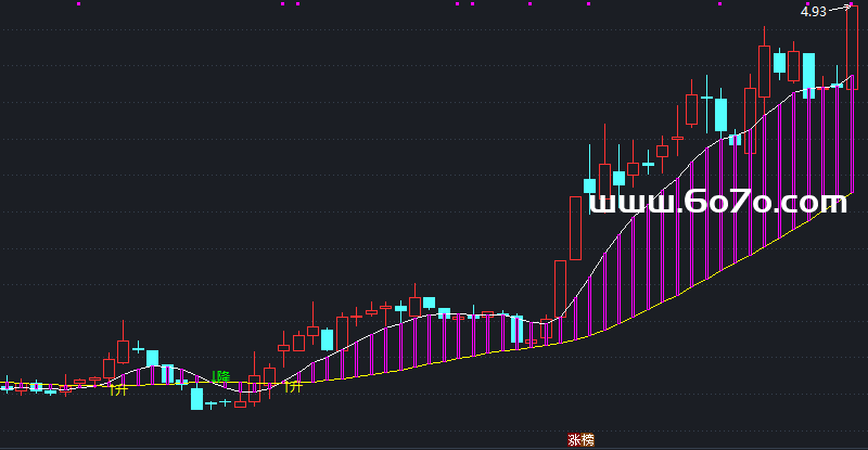接着看动态平衡线——VAR1是VAR0的“动力值”,相当于“现在趋势比昨天强了多少”;VAR2是VAR1的25日平均线,就像“趋势的平均分”。当VAR1**“冲”过VAR2,说明趋势动力在变强,这时用🟡黄色“↑升”标记;反之,VAR1“跌”破VAR2,就用🟢绿色“↓降”**提示。这些信号直接画在K线图上,不用翻副图,一眼就能看懂趋势转折点👀。
