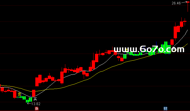 输出结果:最终,在满足条件的K线下方,显示一个白色的"买"字。