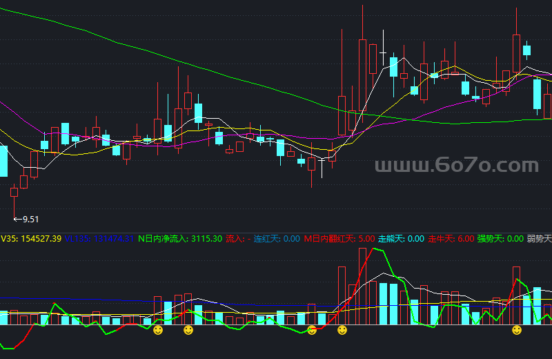 📌 举个例子假设某只股票,5日均量线(红色线)突然向上穿过35日(黄色线)和135日(蓝色线)均量线,当天收阳线,K线图上就会冒出一个笑脸。这时候再看DDX,如果也是红色,基本可以确定:主力在动手,散户可以跟!
