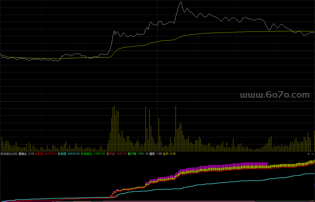 剩下的就是小学算术:机构买-机构卖=净流向,净流向突然由负转正,那根红色小箭头(●机买)就跳出来,告诉你"鲸鱼转身了" 🎯