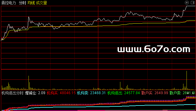 盘中出现第一条黄色柱(机构买占比>50%),先放自选股 📌