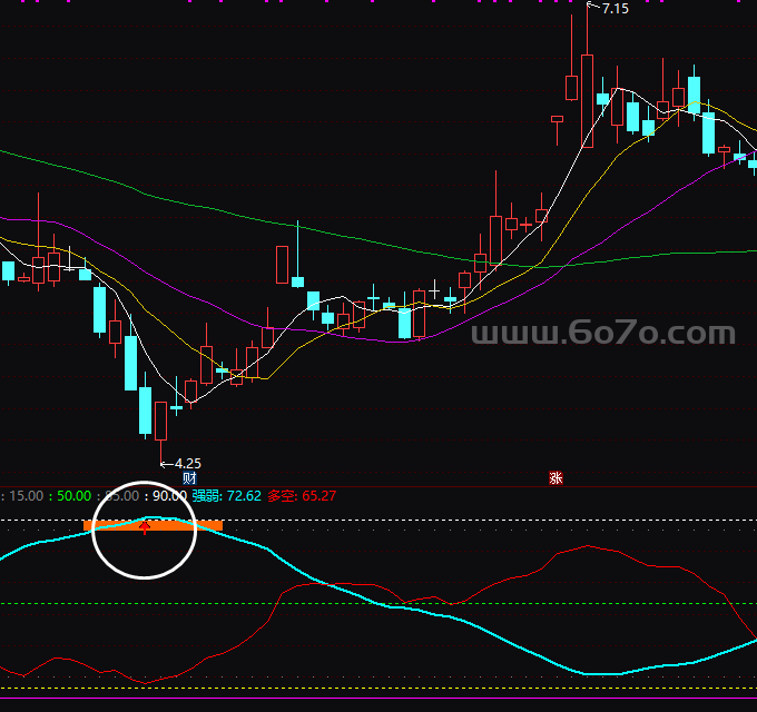 回测了2019-2025年全部A股,发现"强弱"上穿90后20日内平均最高涨幅9.8%,而下穿90后平均回撤-5.4% 📊