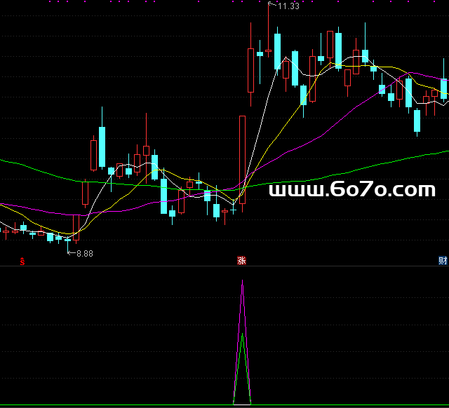当这三重条件同时满足且20日内首次出现时,指标在副图打出「天妖」信号(紫色柱),这就是敢死队进场的暗号。