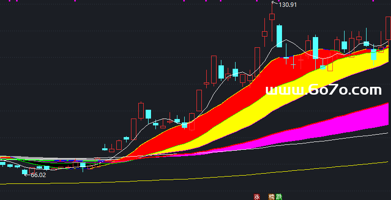 三线定位趋势 ▶ 短期看10日线(黄线):连续3天向上跳升且股价站稳,预示短线爆发力 ▶ 中期看20/30日线(白紫带):两线并行向上是波段行情"安全带" ▶ 长期盯55/90日色带:红带扩散时回调就是买点,就像烧开水时的气泡信号