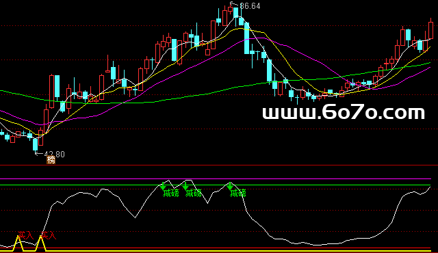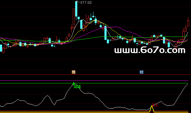 技巧:搭配"趋势线"(白色线),若趋势线>50,放弃操作——避免逆势!